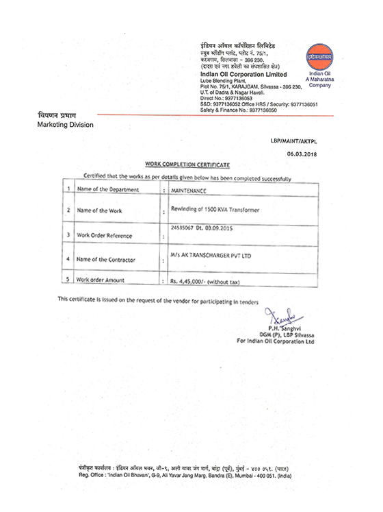 Work Complition Certificate
